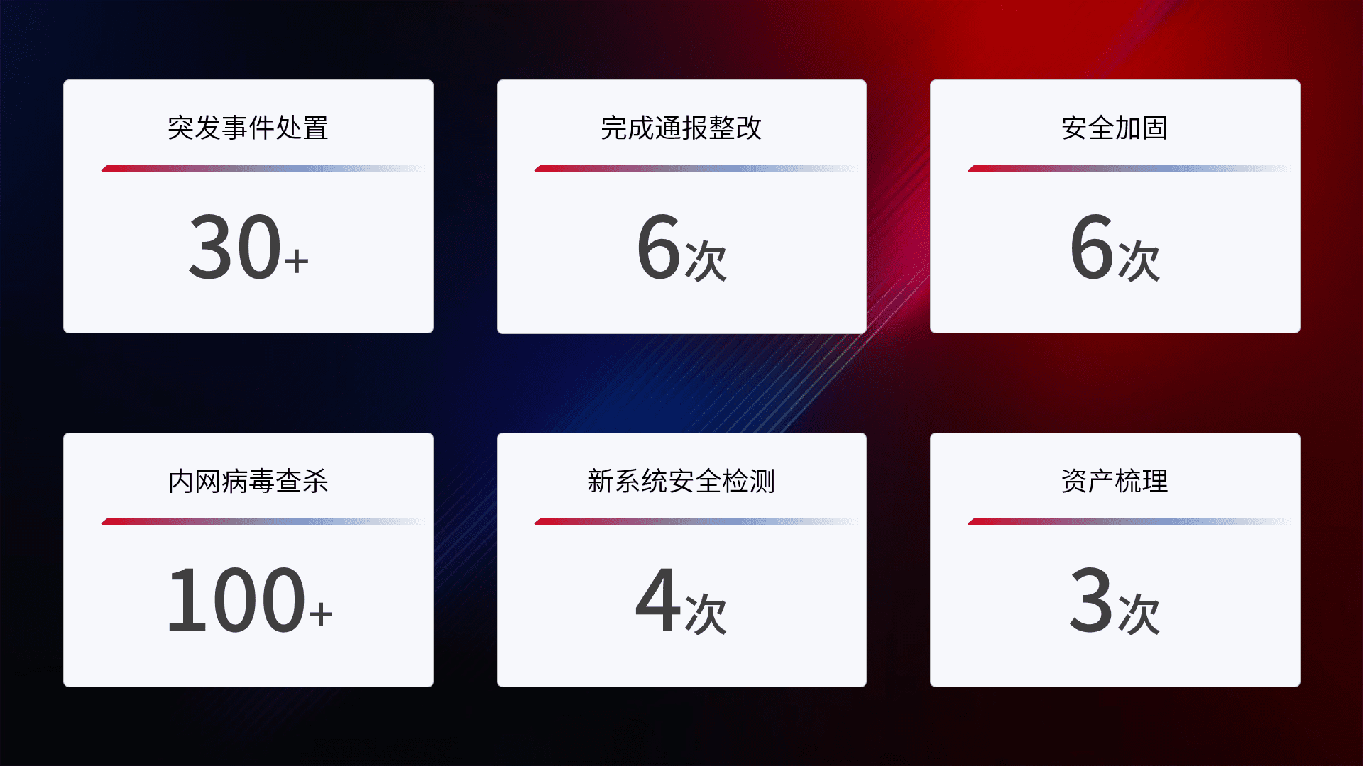 网络安全加固与风险管理:通过技术加固手段,,,,如加强区域隔离,,缩减攻击内网横向移动的范围;优化现有网络安全管理制度,,,降低网络威胁暴露面,,,减少被黑客攻击的可能性。。